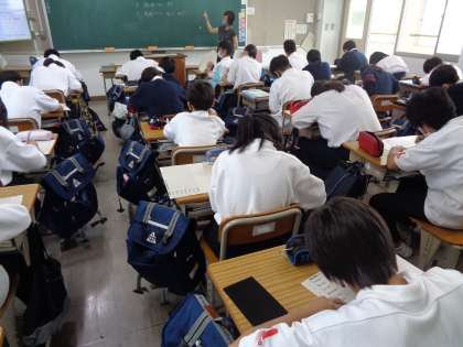 英語の授業です。声に出しながら繰り返し書いていくと単語を覚えやすいようですよ。