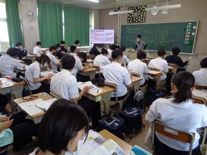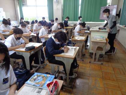 社会科の授業です。戦後になって農地,農家がどう変わっていったかを教わりました。