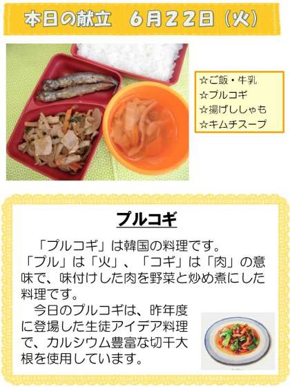 6月22日(火)の 給食献立