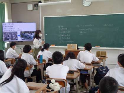 技術科の授業です。1年生の木工で製作した本棚をもっと使いやすいものにするための工夫について考えてきました。