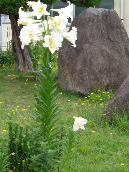 雨にあたると花の勢いが失せた感じになるため,雨の前に職員室前の花瓶に移しています。そちらのほうへ見に来てくださいね。