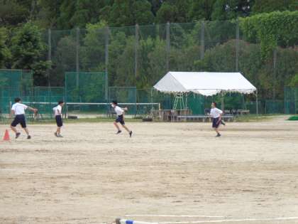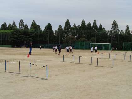 陸上競技の授業です。ハードル走も先生に評価されてがんばりまりました。