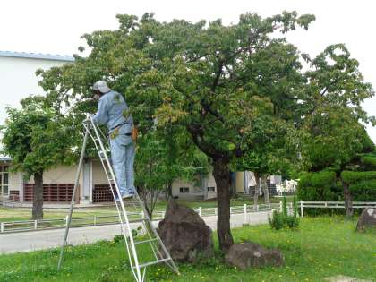 増えすぎた枝や葉っぱを刈って,樹木の中の風通しをよくすることで病害虫を防いだり,少し弱ってきた木の勢いを復活させたりするのがねらいだそうです。
