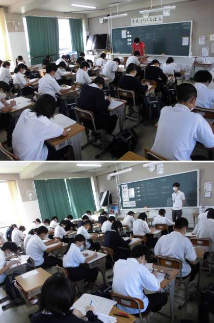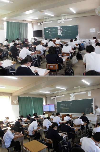 静まりかえった教室の中に,解答を書いている音が響いています。