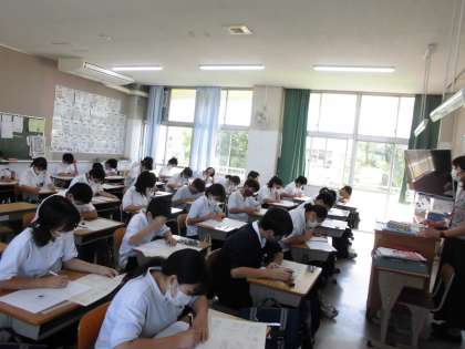 2日目のテストが始まりました。集中してがんばっています。