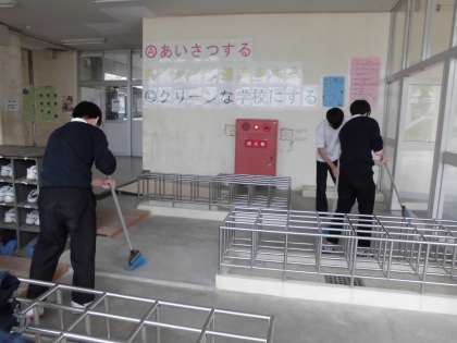 今朝,3年生の昇降口で,掃除をしている生徒がいました。みんなのために,朝からほうきを手に掃除をしてくれる姿を見て,とても嬉しく,すがすがしい気持ちになりました。