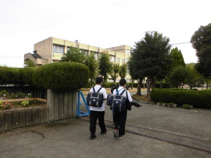 曇り空の朝です。ひんやりとした空気の朝です。長袖の制服で登校してくる生徒が増えてきました。