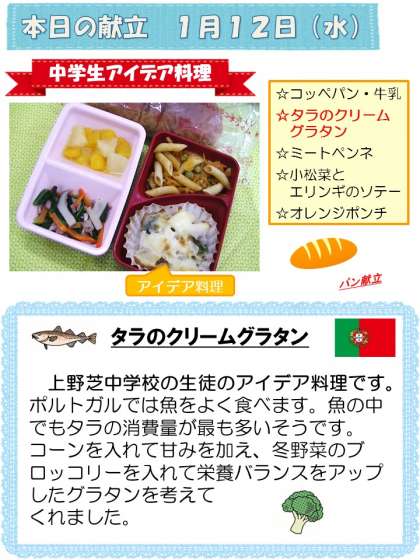 本日の献立は中学生のアイデア料理です。