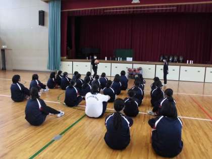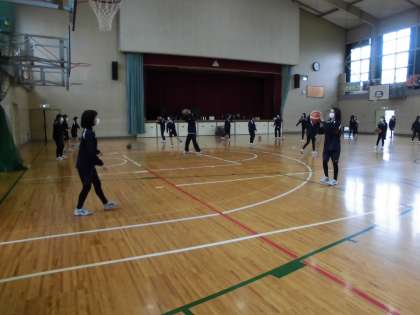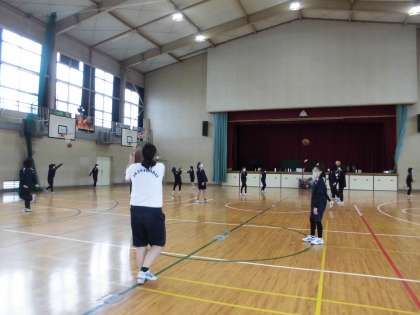 「ワンハンドプッシュパス」について先生から説明を受けて,実際に練習をしていました。