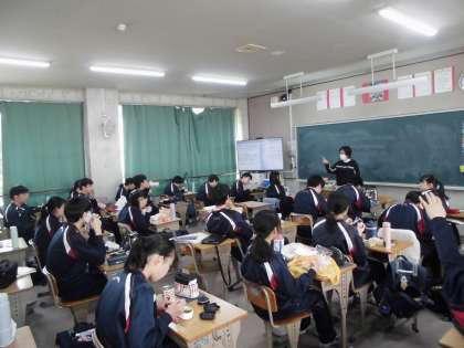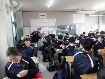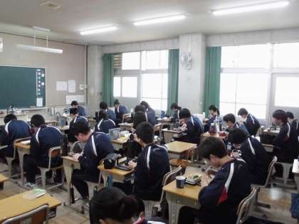 中学校最後の昼食の時間です。最後の昼食も黙食でした。
