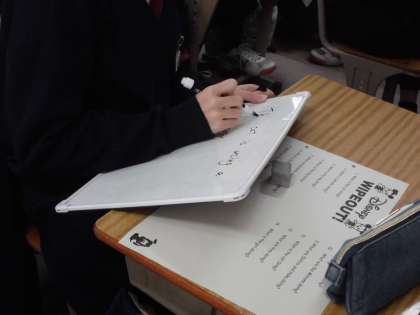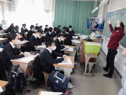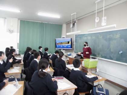 1年生の英語は,NSの先生と一緒に学習しています。質問も,説明も全て英語。よく聴いて学習をしています。