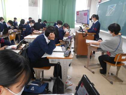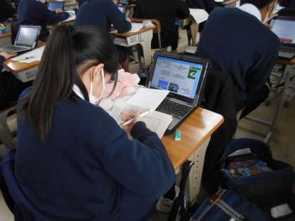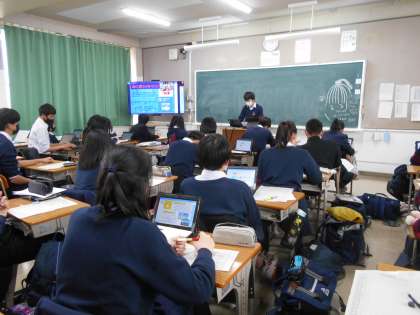 2年生は,SDGsについて学習をしています。調べてそれぞれがパソコンを使ってまとめました。まとめたものを発表しています。