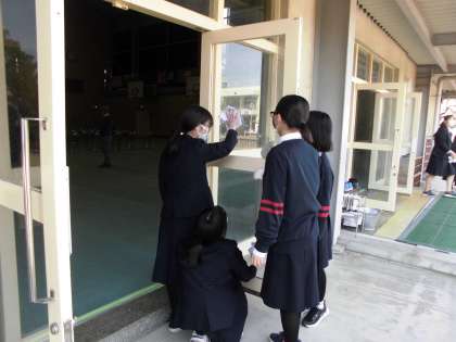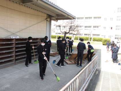2年生は,明日の卒業式に備えて,会場の準備や掃除をしました。準備万端です。