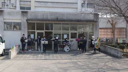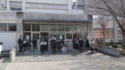 新入生物品販売が行われているちょうどその時,吹奏楽部が2年生昇降口付近で練習をしていました。すてきな演奏が聴こえています。