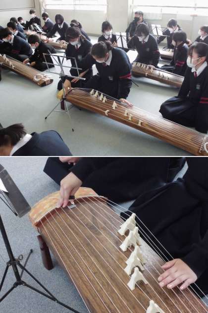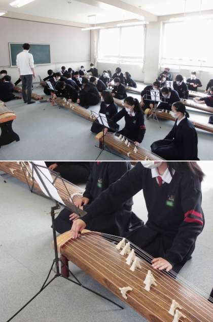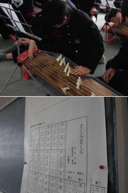 順番に演奏をしています。「さくら」の曲を演奏しています。雅な空気が流れています。