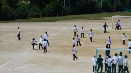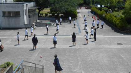昼休みのグラウンドや中庭の様子です。ボールなどを使って元気に活動しています!