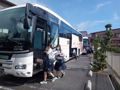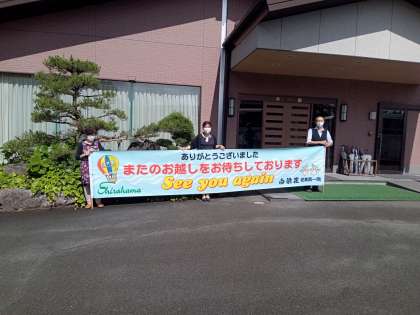 お世話になった宿舎を出発しました。宿舎のスタッフの皆さんが見送ってくださいました。