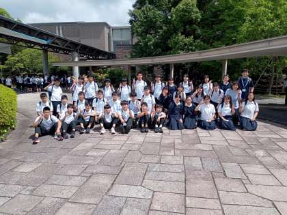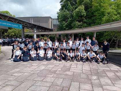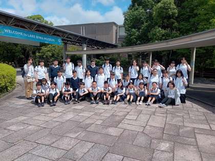 琵琶湖博物館の前でクラスごとの集合写真を撮影しました!