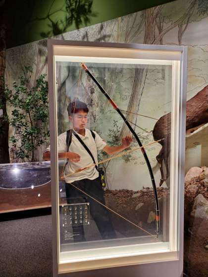 展示室の様子です。琵琶湖の歴史や暮らしについての展示を見て学習しています。