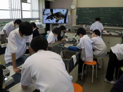 1年生理科の授業で、水中の小さな生物(プランクトン)を顕微鏡で観察しました。