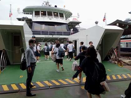 宮島での班別行動が終了し、船に乗ります!