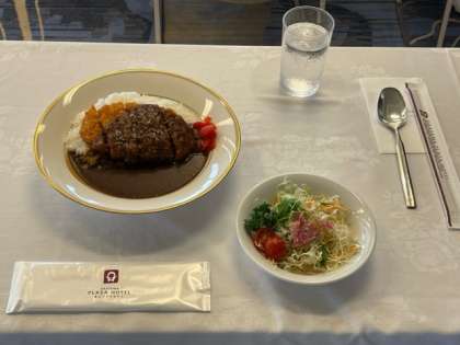 お昼はカツカレーです。