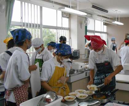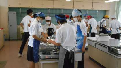 3年生の家庭科の授業では調理実習を行いました。班で協力してホイコーローの調理を行いました。おいしそうなホイコーローができあがりました。