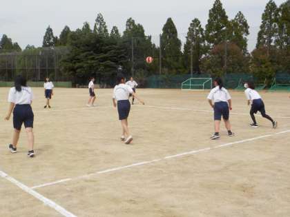 本日、3年生は5・6限にクラスマッチを行いました。グラウンドではフットサルとドッジボール、体育館ではバスケットボールを行いました。チームで協力して頑張りました。写真はドッジボールの様子です。