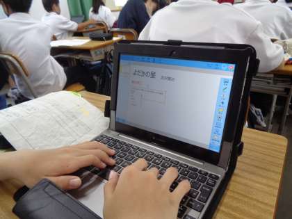 生徒用パソコンを使って,自分がおすすめする本の紹介を作成していました。