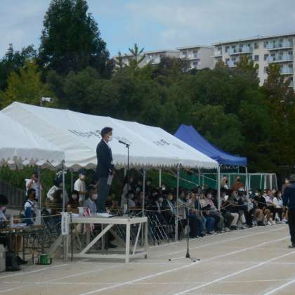 本日、9時より体育大会を開催しました。たくさんの保護者の方に見守られる中、開会式が始まりました。