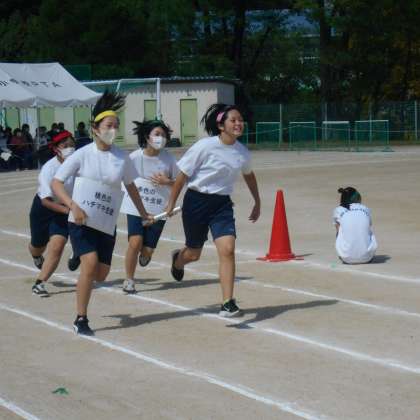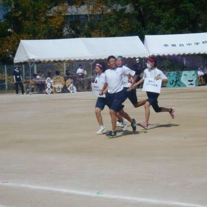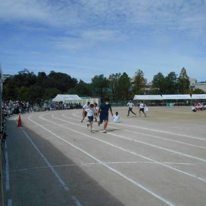 借り人競争は、スタート後にお題を受け取り、そのお題にあった人を探し、一緒にゴールします。生徒だけでなく、先生も借り人として一緒にゴールしました。