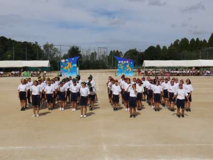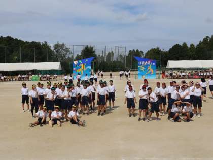 演技が終わり大きな拍手が送られました。最後に1列ごとにカーテンコールです。みんなの笑顔が最高の演技ができたことを証明しています。体育大会を締めくくる素晴らしい演技でした。