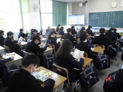 登校してから朝の連絡を行うまでの間、全校一斉に読書の時間を設けています。