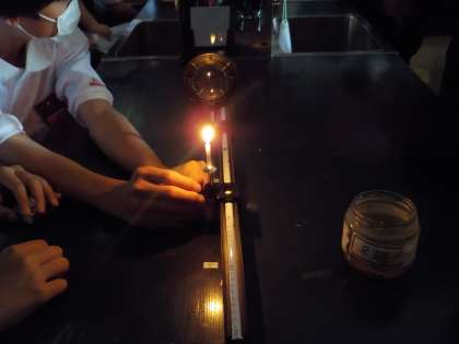 1年生の理科の授業では、光学台を使用して、レンズを通して見える像について考えました。