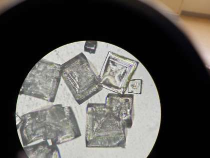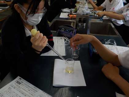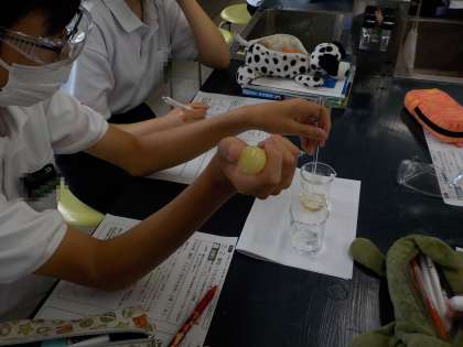 3年生の理科の授業では、塩酸と水酸化ナトリウムを中和する実験を行いました。出来上がった結晶のようすも観察しました。