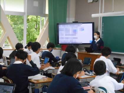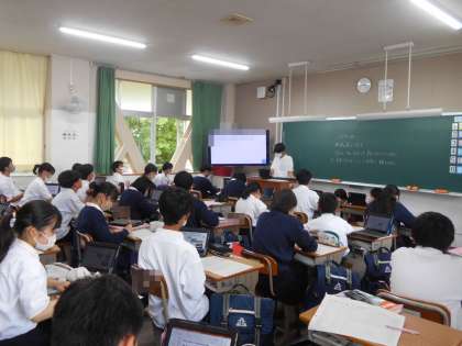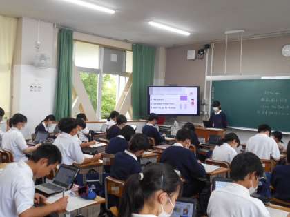 1年生の英語の授業では、自己紹介の文章を英語で作り、パワーポイントを使って発表していきました。