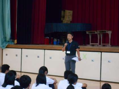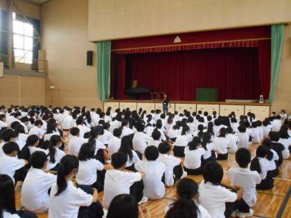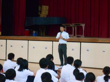 生徒指導主事の先生からは、「あいさつをしっかりしよう」「授業を大切に」「放課後の時間を有意義に過ごそう」の3つの大事にしてほしいことを話しました。7月に予定している非行防止教室のことや、校内のクリーンアップ作戦のことも伝えました。