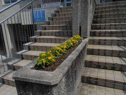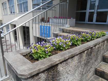 先日にPTAの方々が植えてくださった花がきれいに育っています。