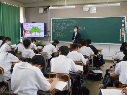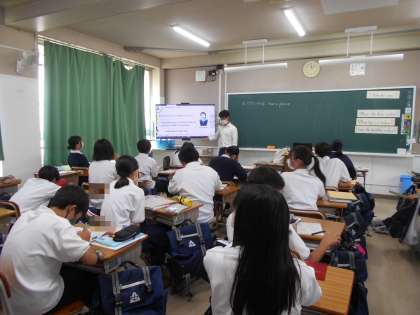 2年生の英語の授業では、空港での乗員と乗客の会話について考えていきました。