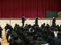 次に生徒指導主事の先生から、駅伝で被災地の石川県から参加した選手が、大きなエールを受け頑張っていた様子が紹介され、被災地の人たちに対して自分たちにできることは何かを考える機会となりました。
