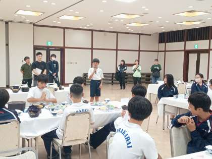 生徒代表のあいさつでいただきます!宿舎スタッフのみなさん、美味しい食事をありがとうございます。
