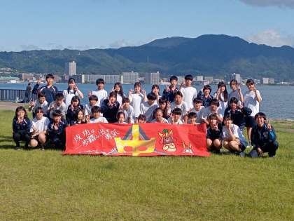清々しい琵琶湖をバックにクラス写真を撮影しました!