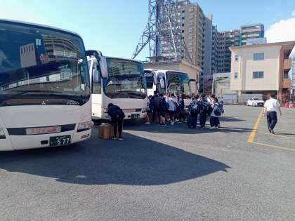琵琶湖スカイアドベンチャーに向けてバスで出発しました。