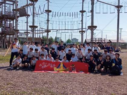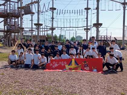 びわこスカイアドベンチャーのアスレチックをバックにクラス写真の撮影をしました。