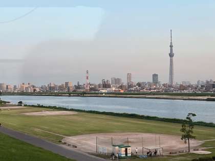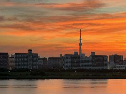 東京を代表する川「荒川」に、現代の建築物「東京スカイツリー」が映えます。