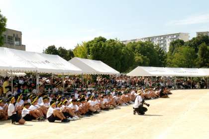 3年生の種目「ダンス」では、1・2年生が前に移動しました。保護者もたくさん観覧に訪れていただいきました。