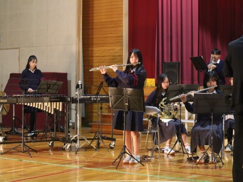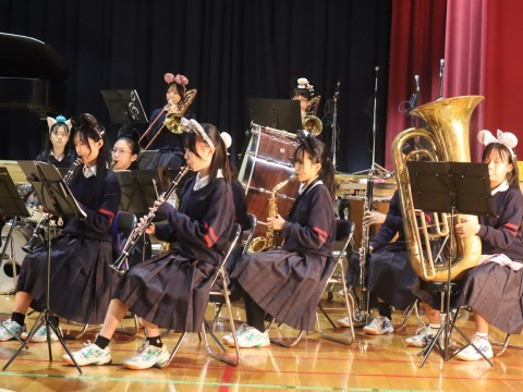 本校からは、吹奏楽部がオープニング演奏で出演し、ディズニー音楽やアニメ音楽など、みなさんに楽しんでもらえる曲を演奏しました。