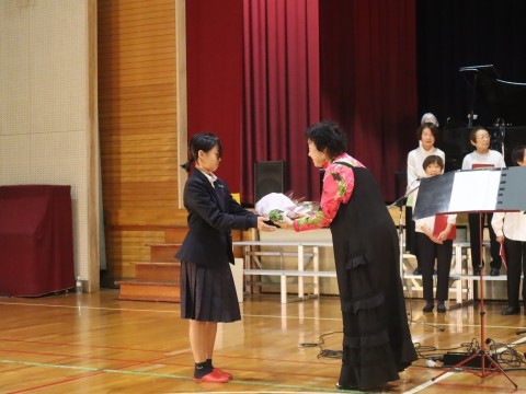 生徒会役員が司会と、出演団体への花束のプレゼンターも務めました。