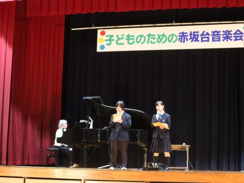 11月3日(祝)に赤坂台小学校で、赤坂台中学校区青少年健全育成協議会の共催による「こどものための赤坂台音楽会」が開催されました。
