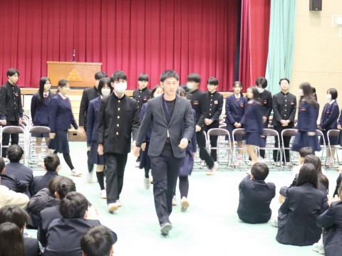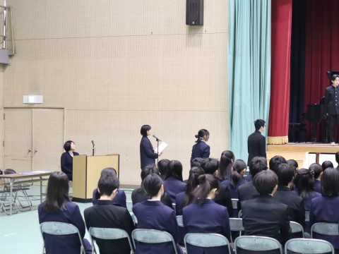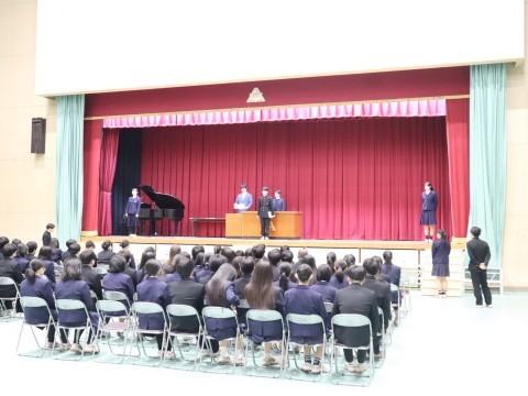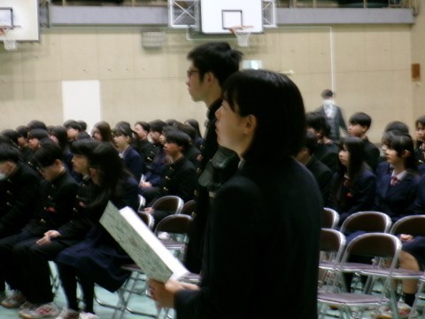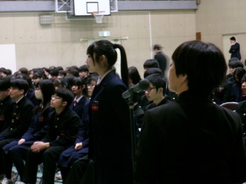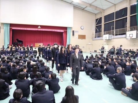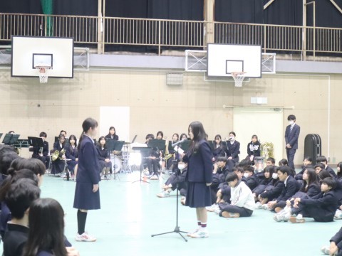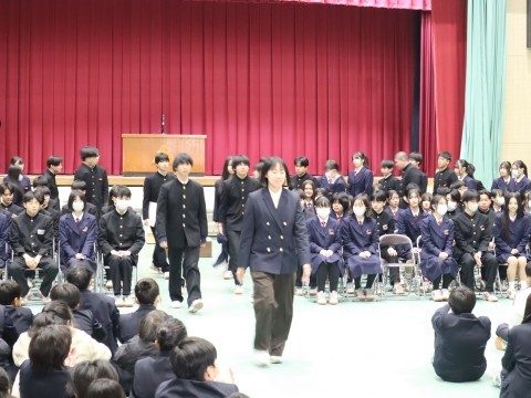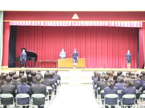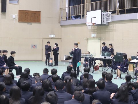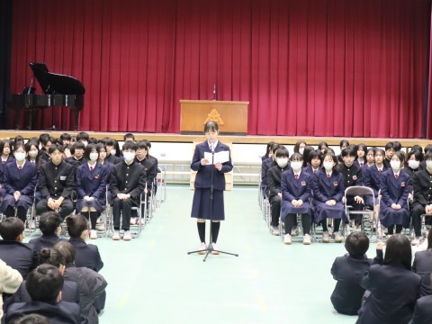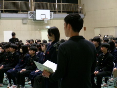 3年生からは前生徒会長からお礼のことばと、3年生全員で歌う『旅立ちの日に』を在校生に向けて届けました。